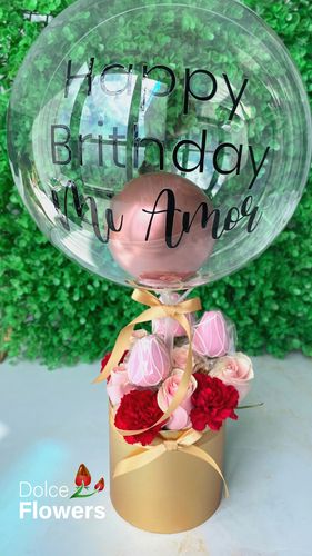 Florencia con fresas y Globo personalizado.